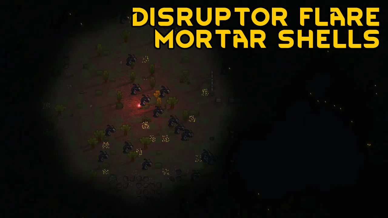 This mod adds a new type of mortar round, the flare shell, which can be crafted at the bioferrite shaper. Use them like any other mortar shell, but instead of exploding they leave a nice helpful disruptor flare laying on the ground. These flares are bigger than the ones used in the disruptor flare backpacks, giving them an larger illumination radius. Requires disruptor flare research and are made at a bioferrite shaper.
