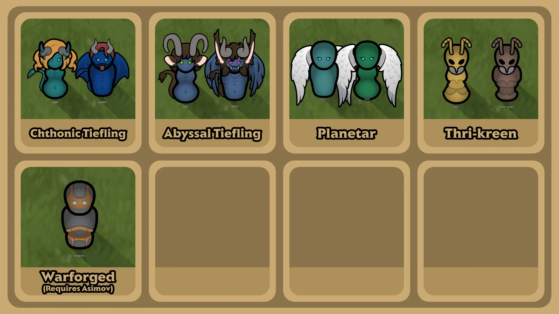 Keep in mind these are [b]not[/b] strictly leaning on the lore, even between editions of D&D there's large differences a lot of the time, and I'm not sticking to one specific edition for obvious reasons considering many races aren't even listed under some of them. If there's a choice of genes on a xenotype you don't like you're going to have to learn to make a patch to change it, as these are gonna follow my own interpretation.