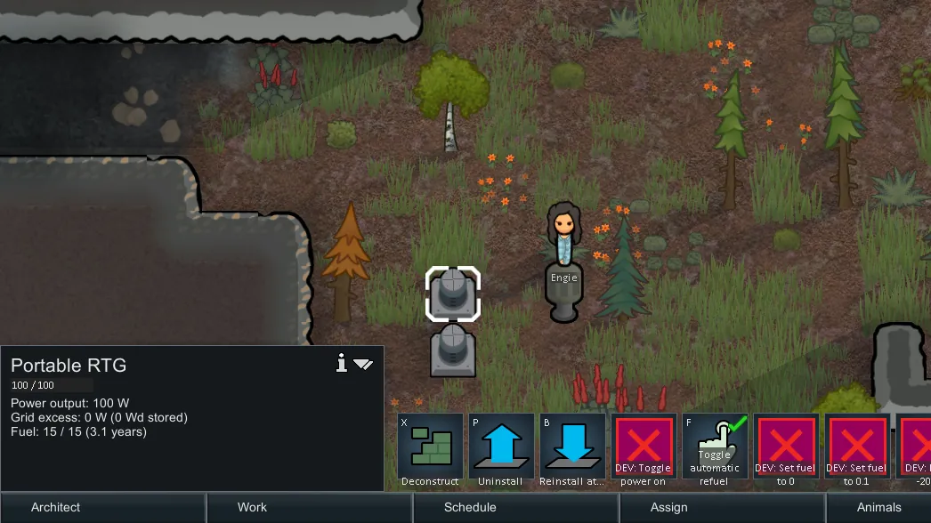 A lightweight mod that adds a Portable RTG (radioisotope thermoelectric) power generator, and portable RTG lights. Designed to be easily relocated, or even brought on caravans. They take uranium as fuel and it takes years for that fuel to be consumed.