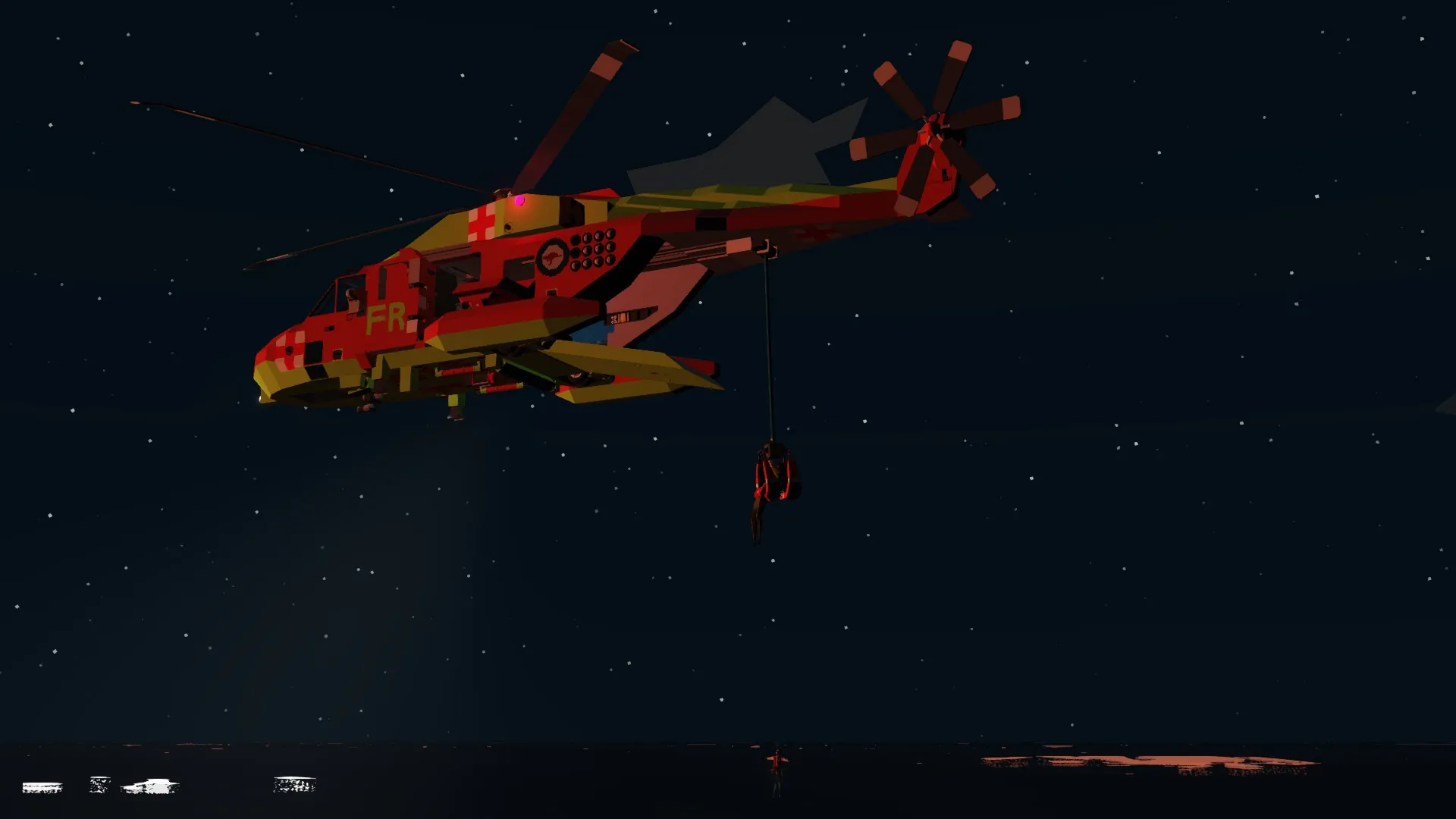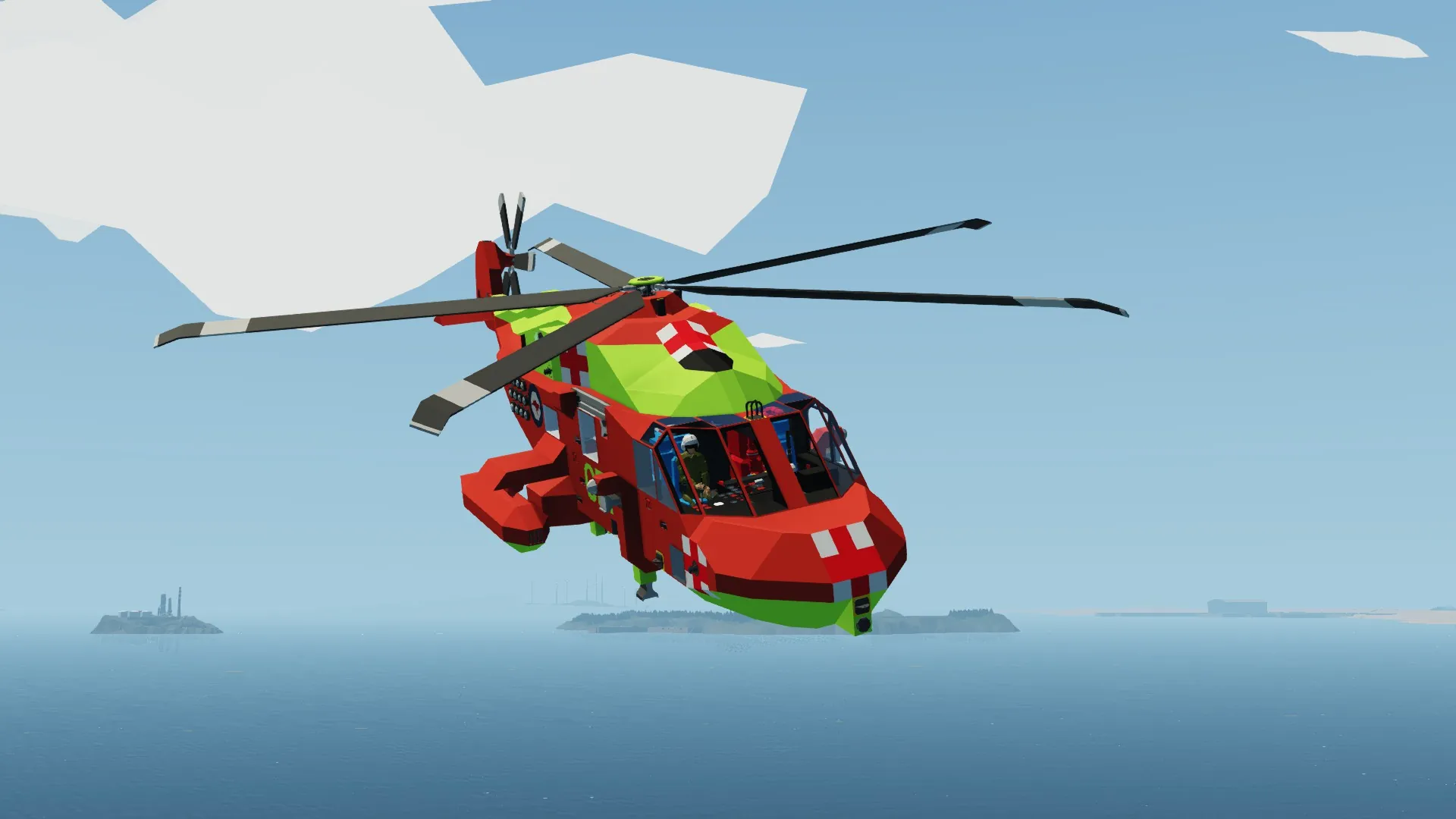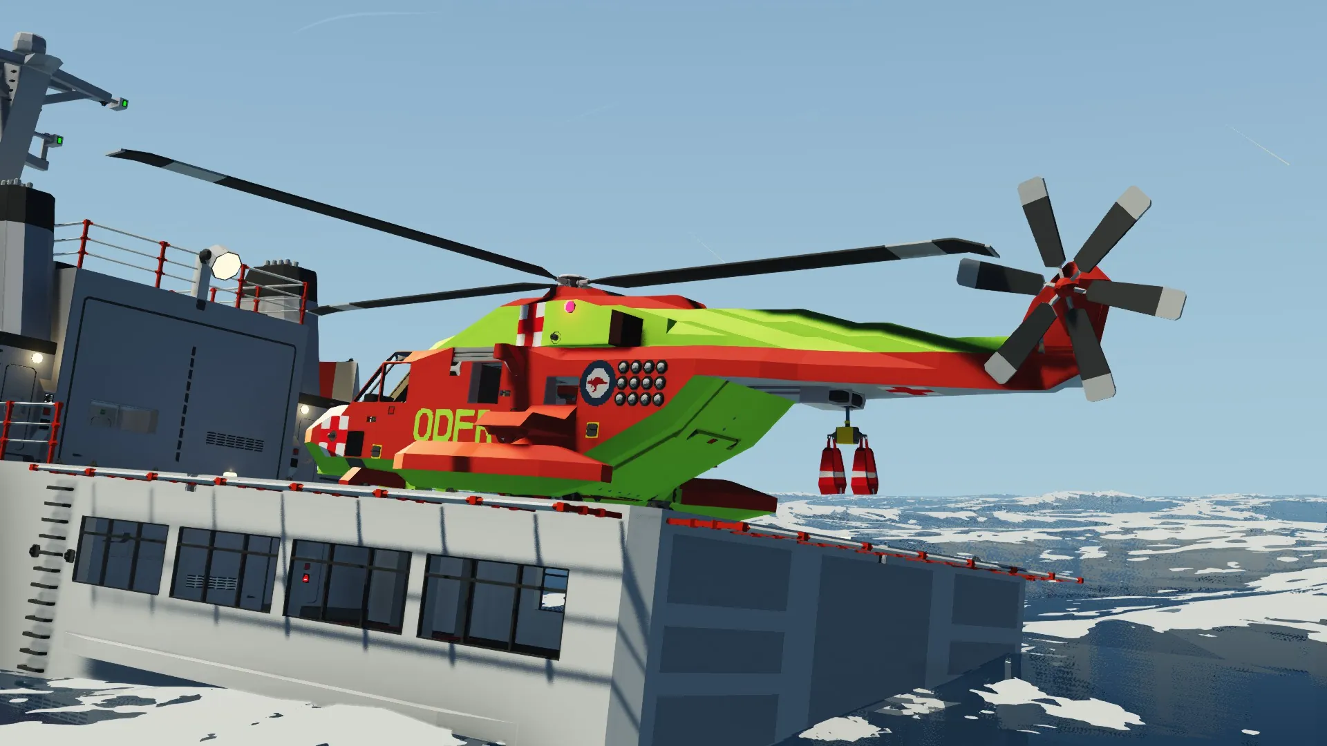 The UH-103B Kingfisher is a single engine medium lift Search and Rescue helicopter designed for logistics and long loiter time. It is equipped with a transponder locator for finding lost craft. The UH-103B is also equipped with a emergency parachute system in case of engine failure. Having a water cannon it can fight fires from the air.