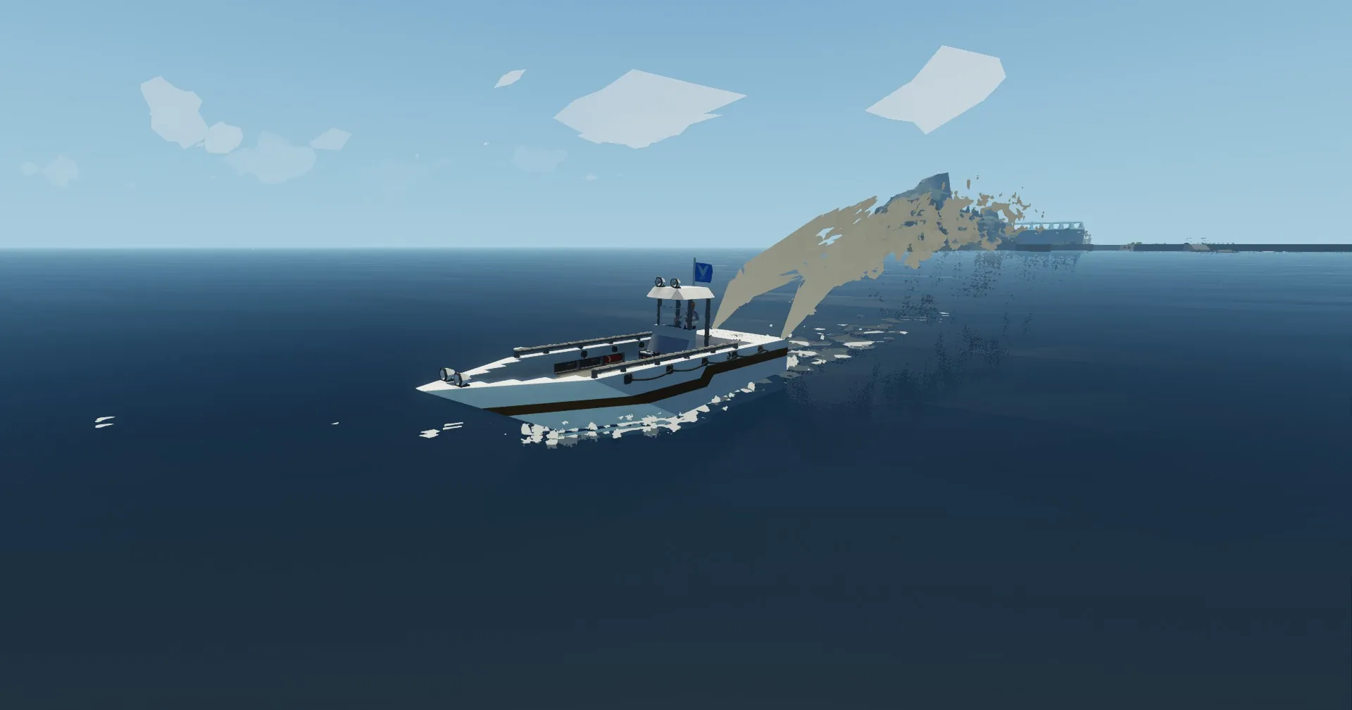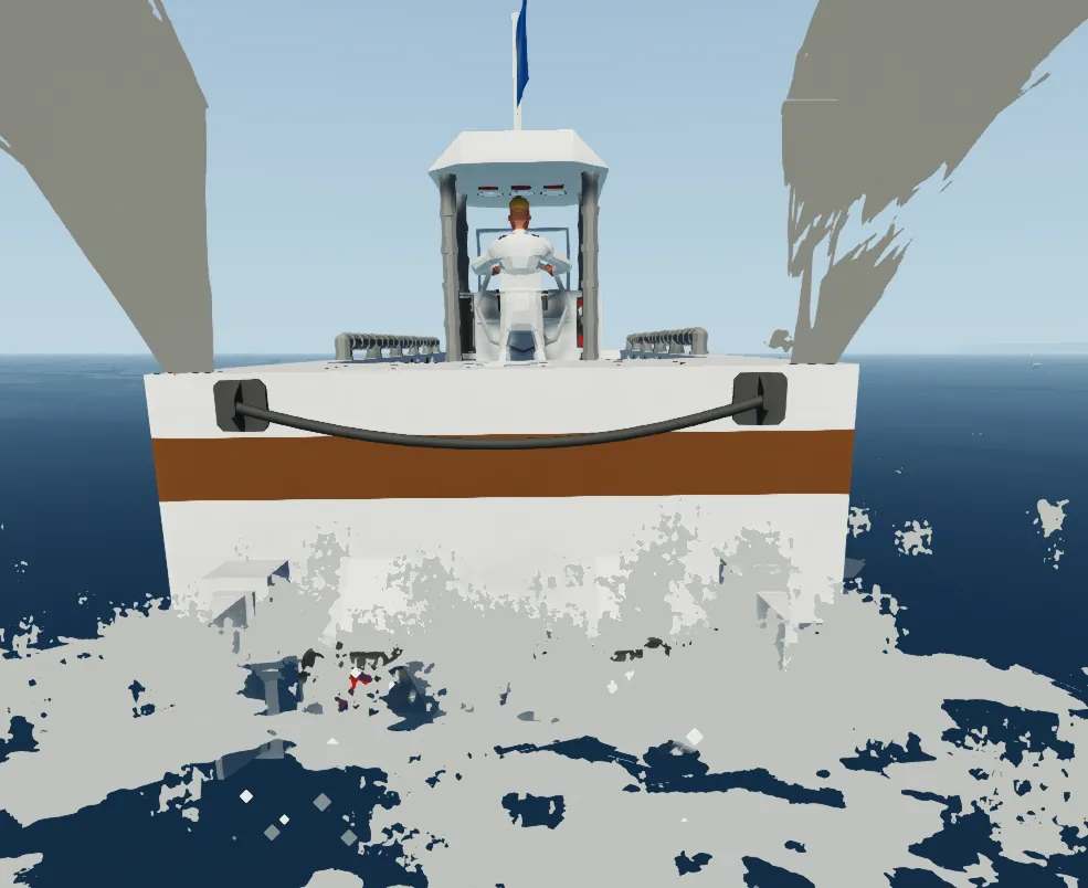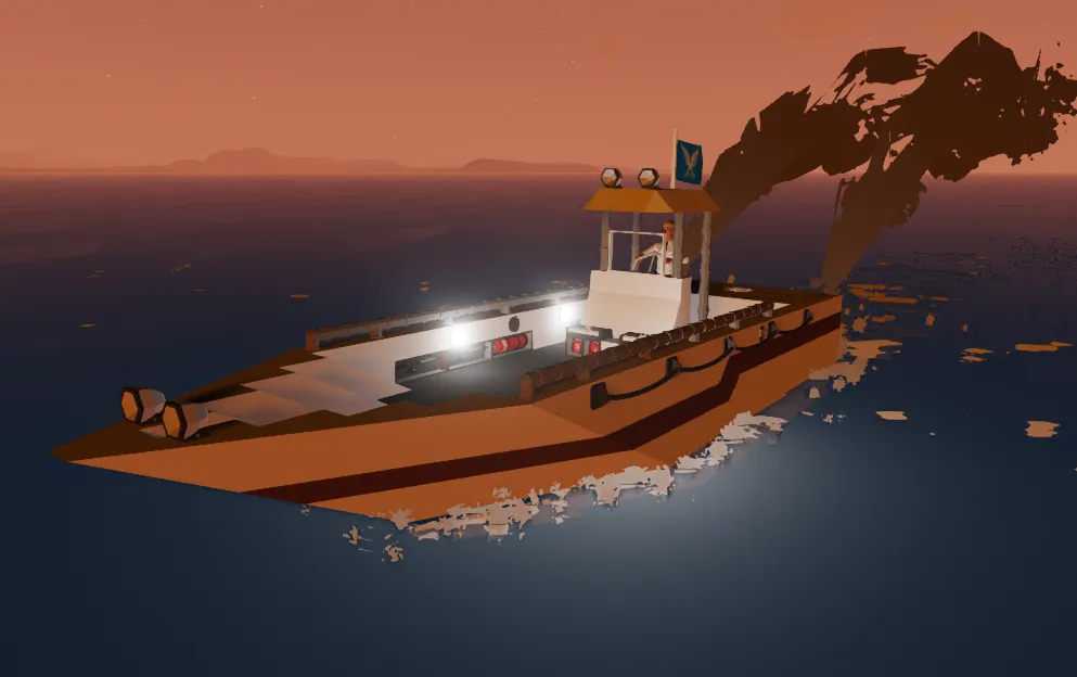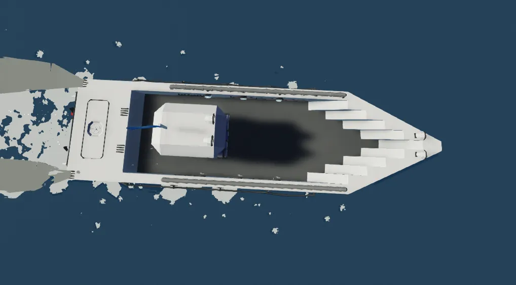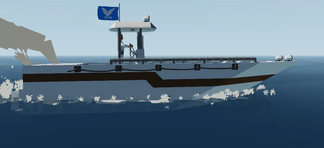 I built a boat designed for efficient and reliable travel. It has a total range of 20 km, making it suitable for longer trips on the water. The boat is designed to balance performance with fuel efficiency. Its structure provides stability and smooth handling during operation.