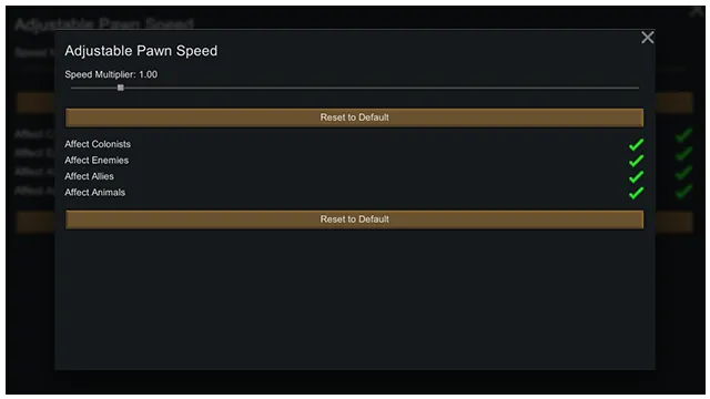 You can fine-tune the speed multiplier and affected pawns in the mod settings.