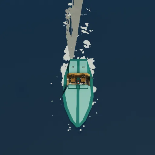 A small recreational 2 seat motorboat with a small engine and stabilization.