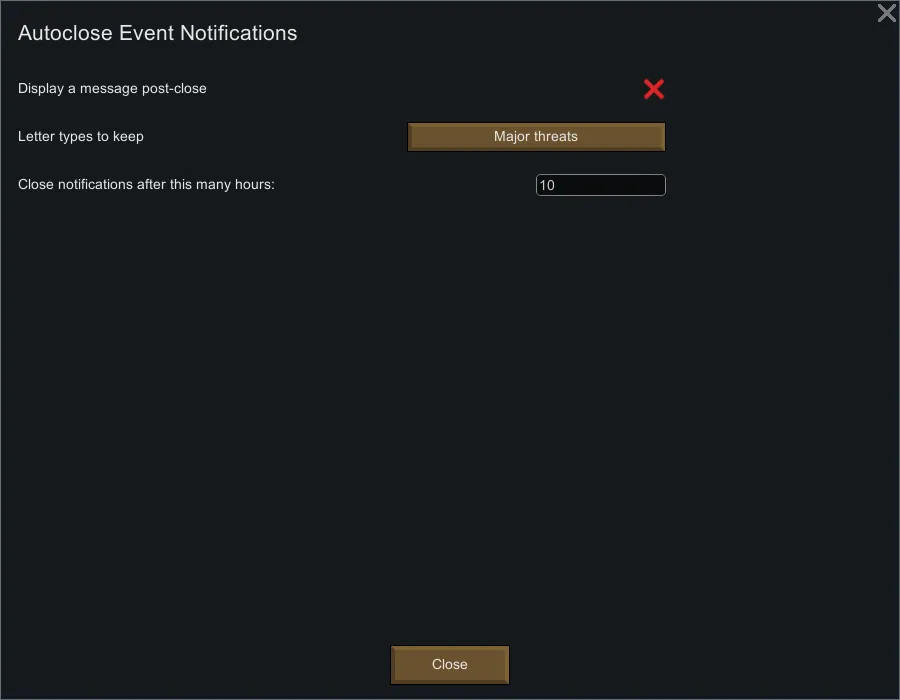 Automatically close old notifications ("Letters") according to your preferences.