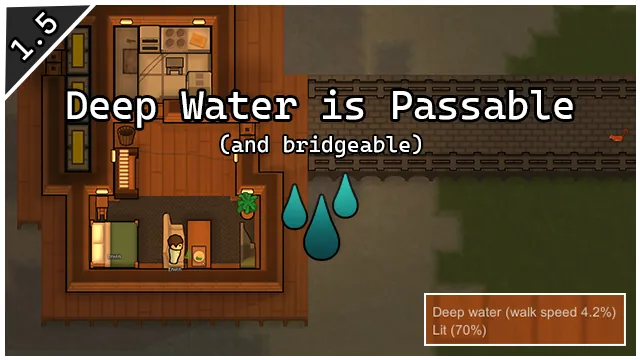 This is a simple patch to make deep water passable and bridgeable. As it modifies the terrain itself, any mod that adds bridges should be compatible with this one. Happy building!