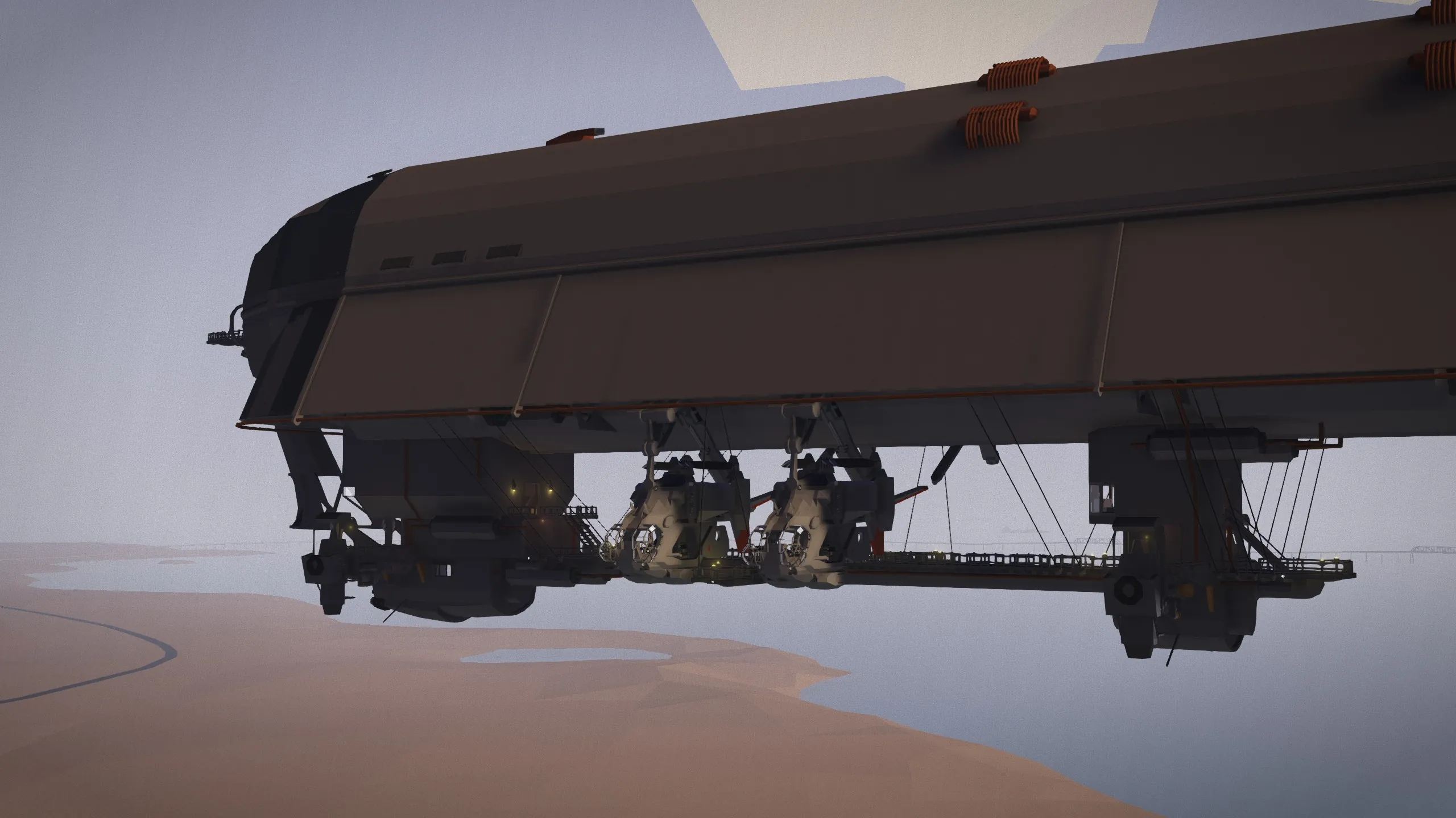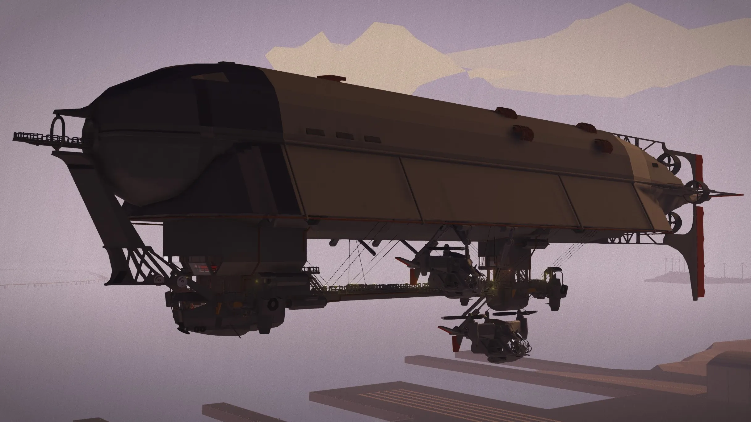 The next generation of Brotherhood airships was born after the defeat of the Enclave at Adams Air Force Base in 2277, taking over six years to design and construct. The Brotherhood's top experts spent two years on its design and assembling the necessary parts, salvaging scrap metal and Enclave equipment from the ruined Air Force base. Other Brotherhood chapters later acquired airships of their own. A few models of this airship were used pre-war in Anchorage, Alaska.