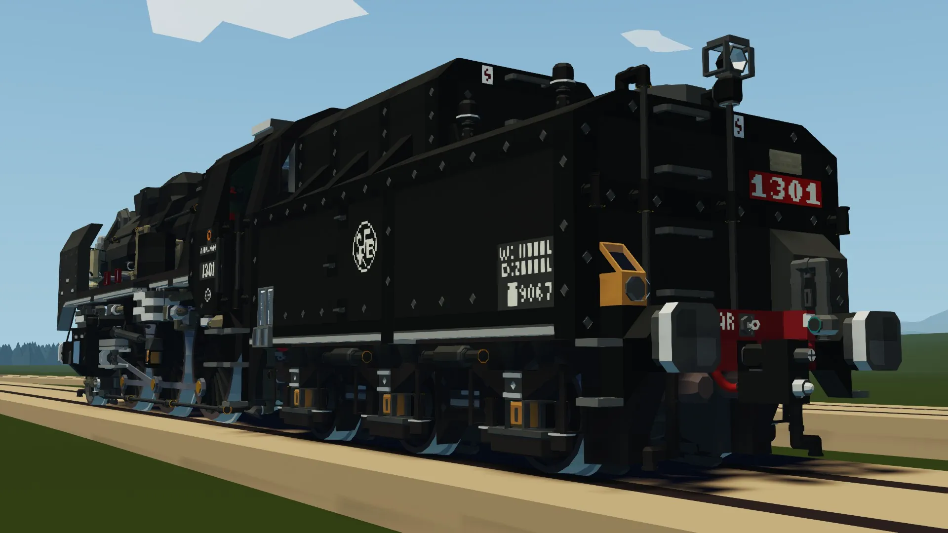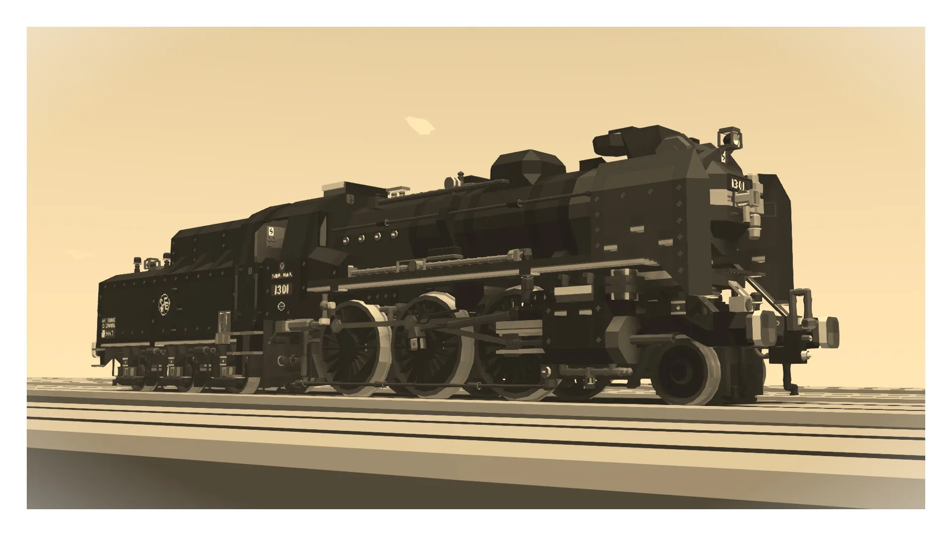 The SRFB had anticipated that rising tensions in Europe would spark war and so began to develop a reasonably strong, cheap and easy-to-maintain locomotive for wartime duties. One of the first proposals was the 130M: a fairly light 2-6-0 intended to handle general goods and coal trains, although they would occasionally transport armaments to the ports around the Sawyer Isles. The first batch of 10 locos was ordered in 1935 and trials proved they would be capable of dealing with goods traffic under wartime conditions. The success of the design stemmed from its versatility, compactness and range which allowed the 130Ms to run on all parts of the SRFB's network. SRFB 1301, the first of class, worked primarily along the eastern region but was shipped to mainland Europe in 1944 to transport supplies for Allied efforts to liberate France. The most notable incident she faced was an encounter with German fighters near Troyes which she fortunately evaded by hiding in tunnels. SRFB 1301 remained in service until 1950, outliving her expected service life of 4 years. In fact, the 130M was used as a basis for steam locomotive design in the post-war era due to its resilience, although the SRFB had already begun to phase out steam traction by the 1950s. The majority of 130Ms were scrapped but a few have been turned into static displays, while 1301 awaits restoration to full working order. This build represents SRFB 1301 in 'wartime black', just having undergone a full overhaul after returning to the Sawyer Isles in 1945.