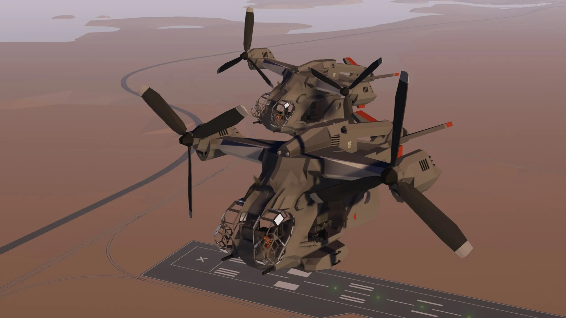 3. Lift off in heli mode or tilt wings forward before engines power and takeoff as a plane.