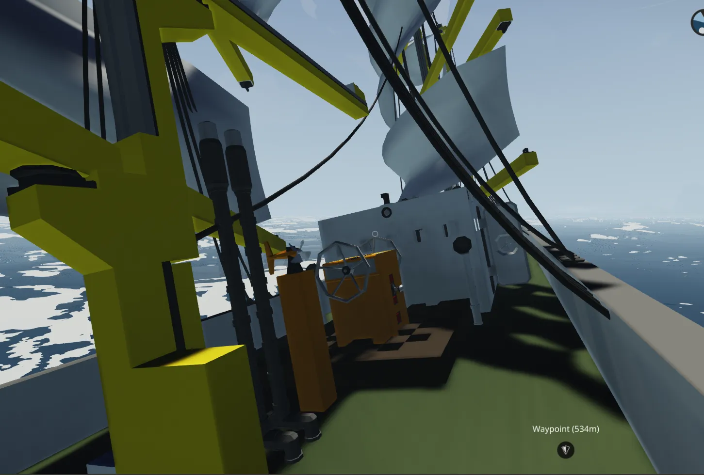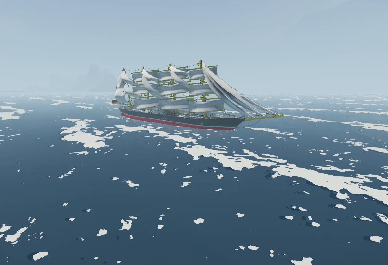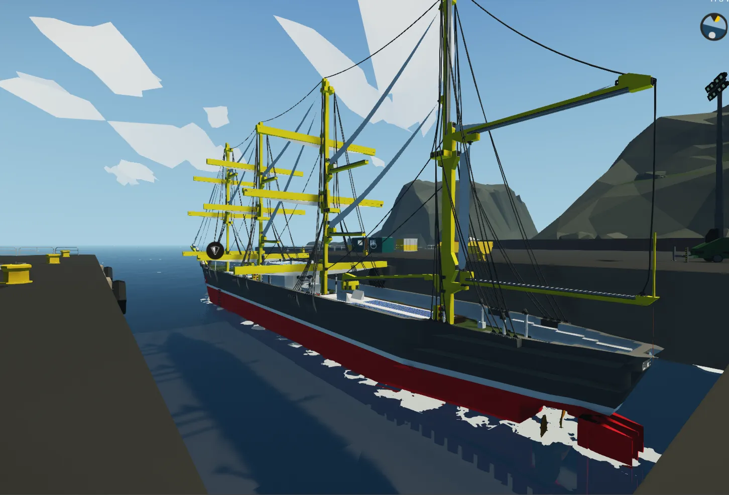 - Position and set Sails with the Toggle Buttons anf flip Switches in the Deckhouse