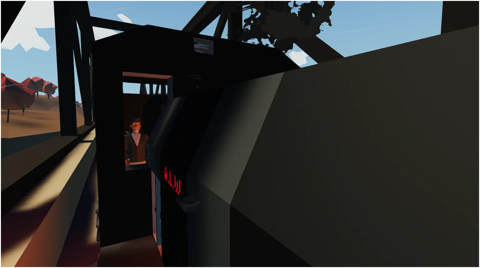 This train is equipped with welding torches and extinguishes just in case, along with ropes. This train can be transported off the rails via the "WHEEL RELEASE" switch in the cab.