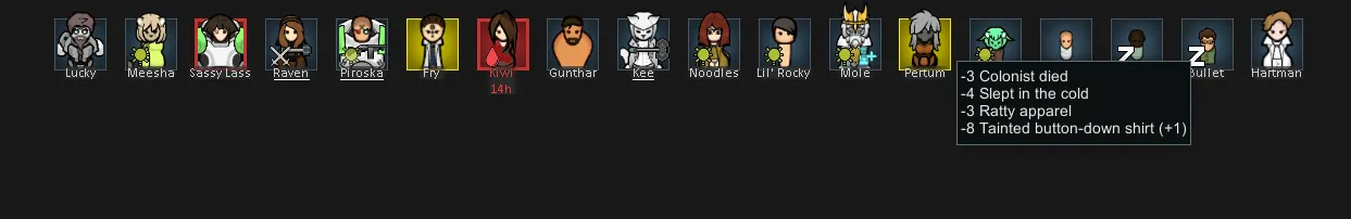 [*] [b]Mood outlines:[/b] Yellow for minor break risk, red for major, and pulsating red for extreme.
