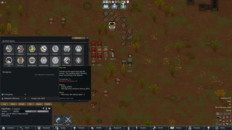 Gives effects to cosmetic genes. Currently for ears, noses, and voices, will expand later. This is my first RimWorld mod so learning as I go.