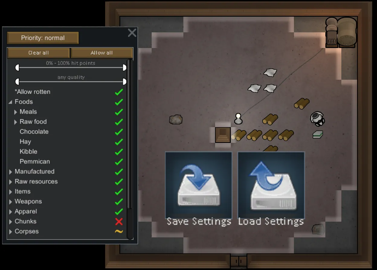 - save/load the priority for storage settings in stockpiles and buildings