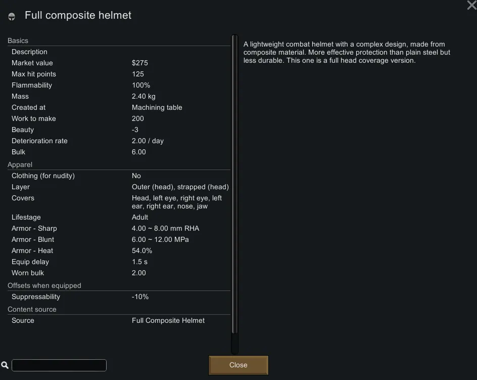 Adds an alternate full composite helmet. Original helmet sprite comes from [url=https://steamcommunity.com/sharedfiles/filedetails/?id=2369524454] JangoD'soul's EFT Apparel. [/url] !!!CE ONLY!!!