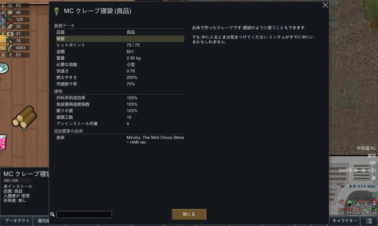 This Mod is adding a Japanese translation to the original Mod "[url=https://steamcommunity.com/sharedfiles/filedetails/?id=2477501851]Mincho, The Mint Choco Slime ~ HAR ver.[/url]".