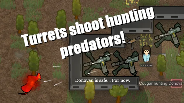[b]Something that I feel should always have been vanilla behavior. Turrets now target predators hunting your pawns.[/b]