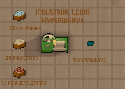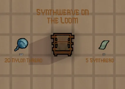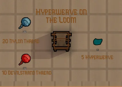 Using the [i]Loom[/i], 20 Nylon Thread can be crafted into 5 [i]Synthread[/i] Cloth. Alternatively, [i]Hyperweave[/i] Cloth can be made with the additional of 10 Devilstrand Thread.