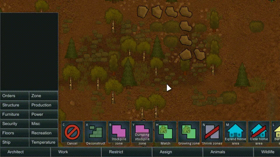 - Areas are [b]tagged for Colonist or Animal[/b] and don't show up as selectable when not tagged