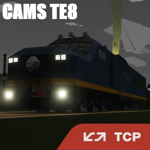 The TE8 is a (Fictional) Turbine-Electric locomotive built by CAMS Engineering to pull long and heavy trains through the long and often unforgiving distances of outback Australia, carrying enough fuel and power to effortlessly haul the heaviest trains either alone or with other locos from the TCP family.