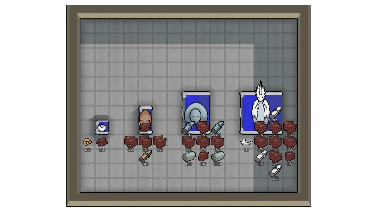 Added four sizes of farm vat. You just need to put tamed animals into it and fill it with enough nutrients, and the farm vat will give you animal resources within 10 days, including skin, meat, eggs, milk, wool, etc. Insects also produce insect jellies. The longer an animal's adult cycle, the more nutrients it consumes daily.