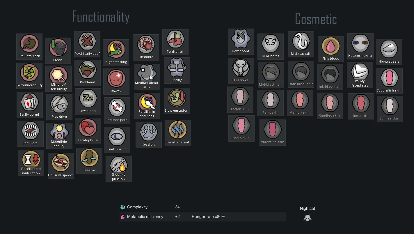 🌼 [b]Optional:[/b] Vanilla Races Expanded - Lycanthrope. If installed, it will add the territorial gene to Nightcats. If not installed, your Cats will simply be a little less hungry : )