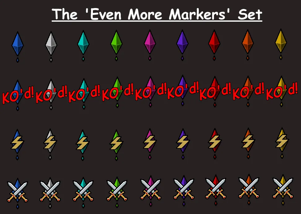 Some simple color coded markers for 'Mark That Pawn' ========================================= Update 1.1 Added the 'Even More Markers' and 'Overgrown' sets