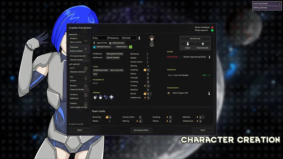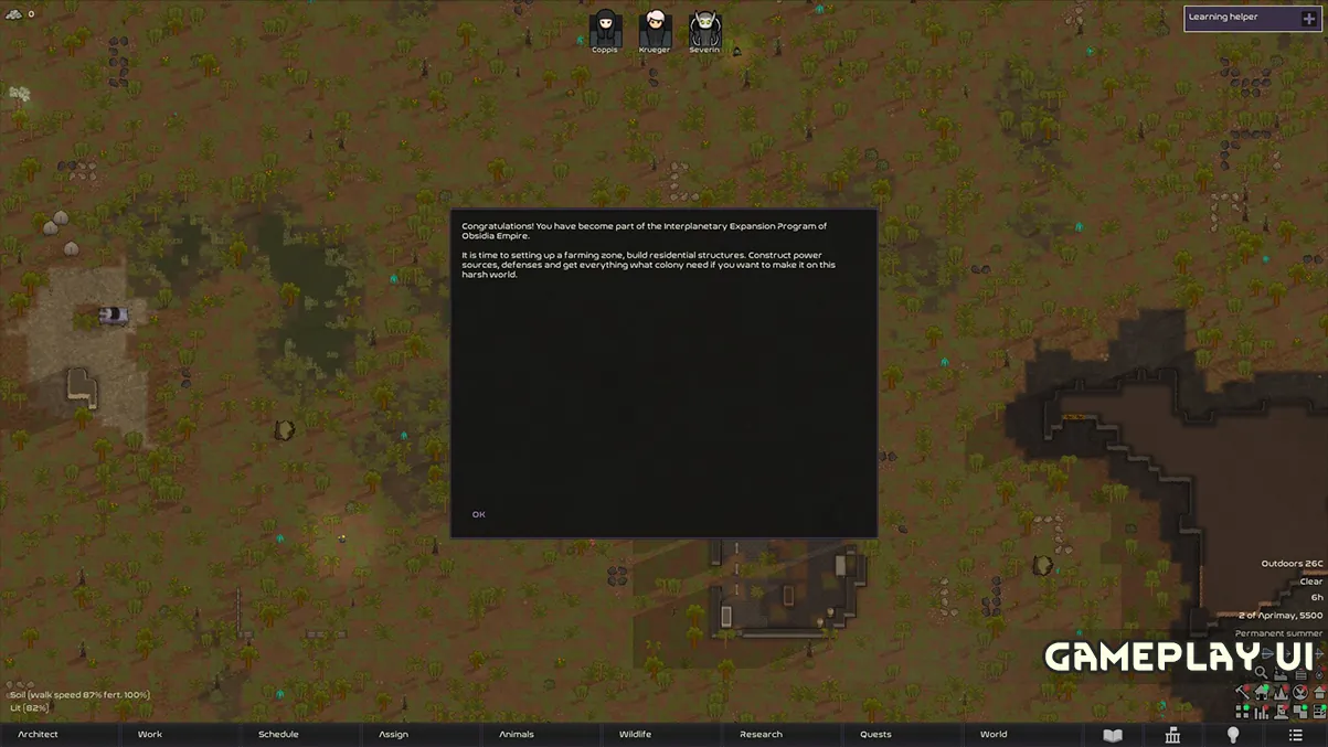 This theme reshapes RimWorld’s user interface with a cold, industrial aesthetic inspired by [b]Obsidia’s[/b] ultratech culture. Dark panels, sharp contrasts, and restrained highlights give the UI a militarized, high-tech feel, as if your colony is overseen by an advanced but unforgiving system.
