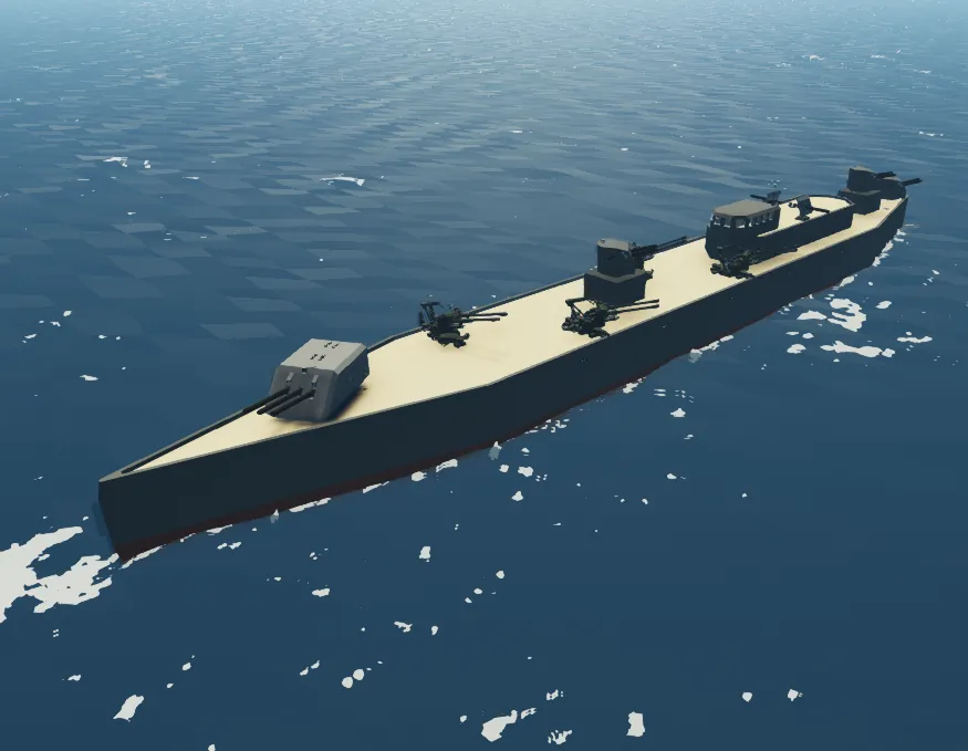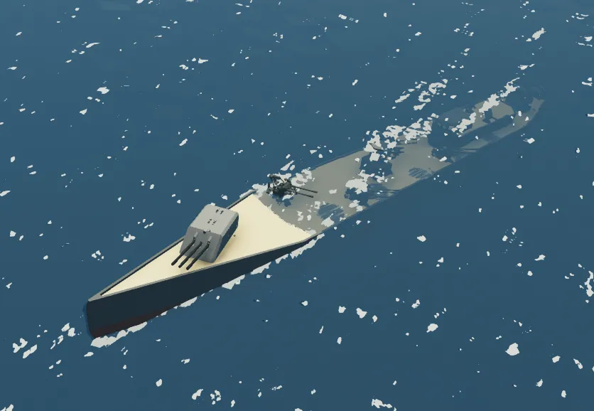 This ship is a WW2 Japanese inspired weaponry ship. It carries 10 Kaitan Kamikaze submarines with deadly and secretive delivery. As of now, it does need infinite fuel which is being worked on.