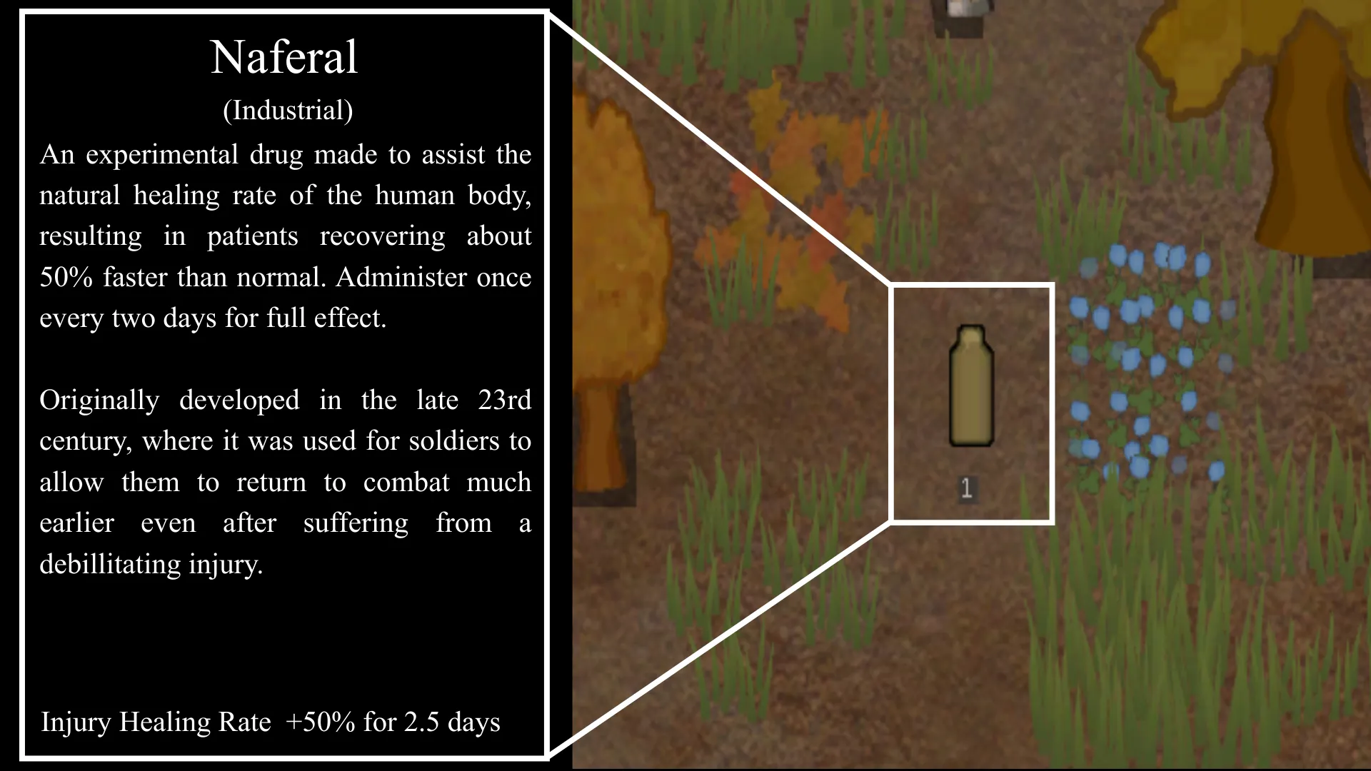 [i]"A more refined and advanced version of Naferal, used to double a person's healing rate. Administer once every two days for full effect."[/i]