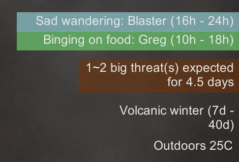 Cassandra works on a cyclic pattern. One or two major threats for 4.6 days, then 6 days with no major threats. Using this information you can make less risky choices. But tracking this information manually is arguably cumbersome. This mod puts the info into your UI. Allows you to turn off the data you aren't interested in, and customize the parts you are.