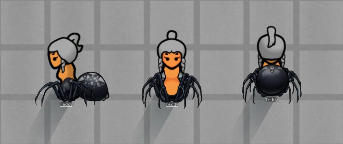 They are a subspecies of humans, a hybrid between humans and spiders. They are usually beautiful, which attracts human males, but human males are usually frightened away by their lower bodies. Bagi spider's skin is encased in a tough chitinous substance that makes it hard as steel, but it is weak to heat and burns easily. From a spinneret near its anus, it can fire webs to subdue its enemies, and its many legs allow it to be skilled in crafting and art.