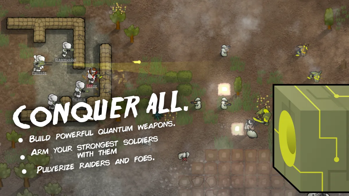 An ancient evil has awakened, and invaders from the outer reaches of the known cosmos are invading your planet! Will you be able to defeat them with your subpar armament? Harvest their archotech materials and use them to create your own arsenal of powerful quantum weapons and reign supreme!