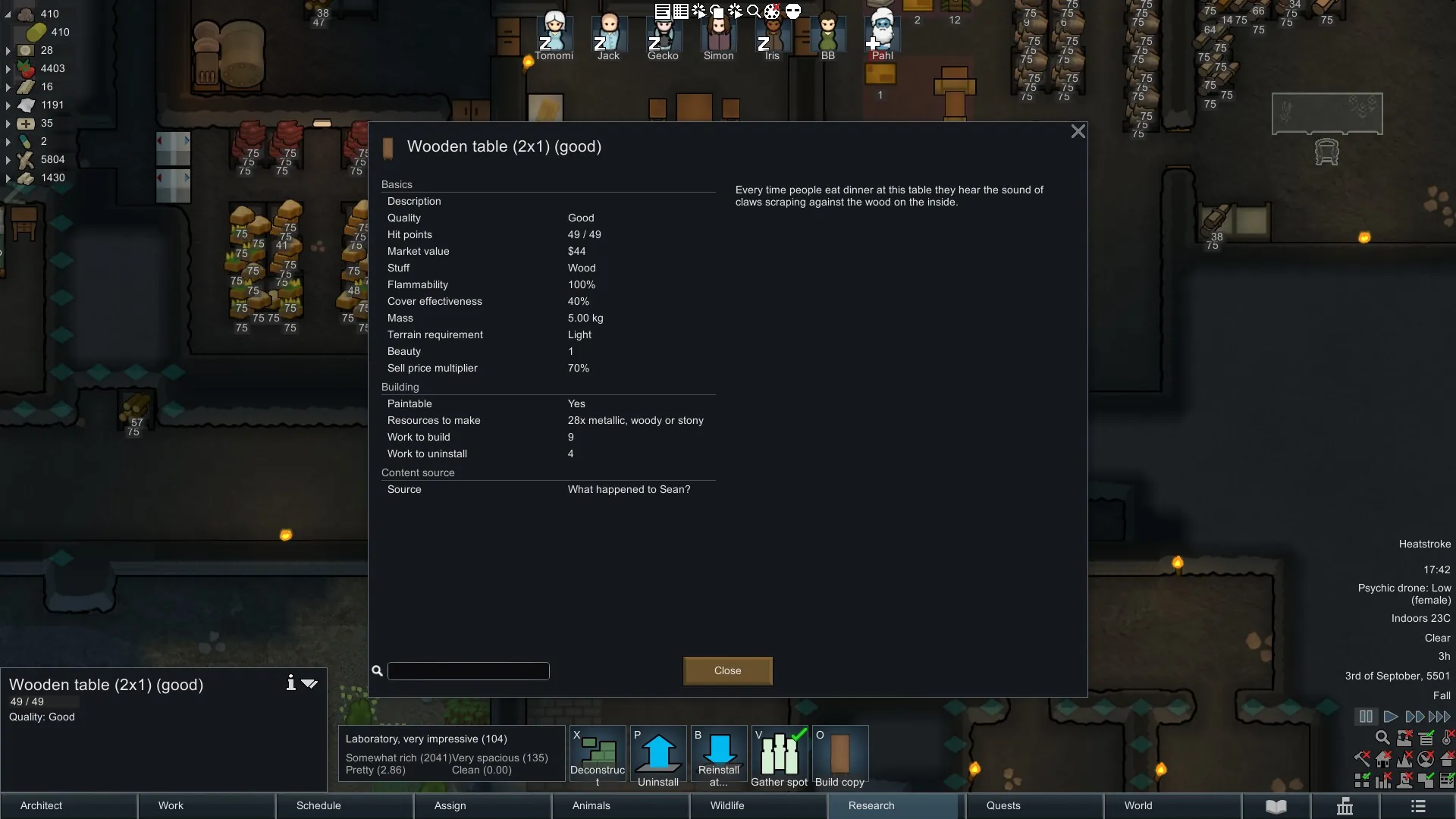 It's just a table with a creepy description. Or is it?