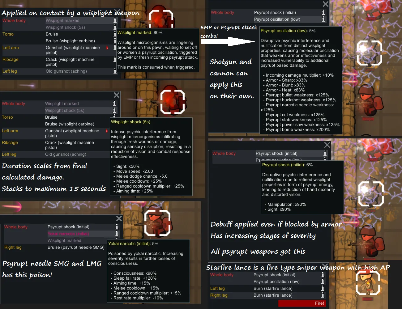 Wisplight Insects - Oni can create eggs out of wisplight pods that can hatch into various Wisplight insects to farm them, as fighters or hauling. They all can inflict a nasty wisplight burn with their bites or claws, that reduces body part efficiency with residual psionic interference taking a physical manifestation on those burns.