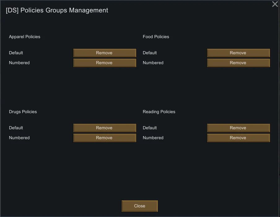 Existing Policy Collections can be deleted from the mod options panel.