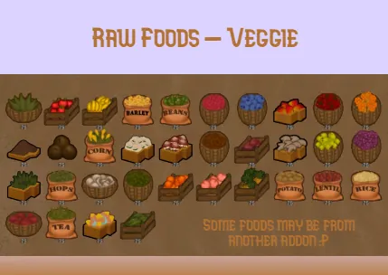 I prefer the more subtle vanilla tiles over the shiny VG versions, so I was happy to come across [i]Argon's[/i] [b]Vanilla Style Textures for Vegetable Garden[/b] mod. Unfortunately, that mod never went beyond 1.1 and while it does still work, the only textures it updates are for raw vegetables, and fruit.