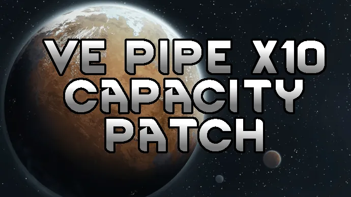 Multiplies the storage capacity of all VE pipe system storage containers by 10, to bring them more in line with Taveron's 'Increased Stack' mod.