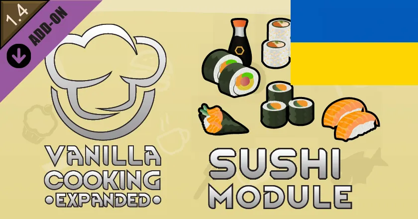 Vanilla Cooking Expanded - Sushi – це другий підмодуль до нової серії модів Vanilla Cuisine Expanded. Цей модуль додає суші – їжу на основі риби та рису, яка є надзвичайно популярною в світі RimWorld.