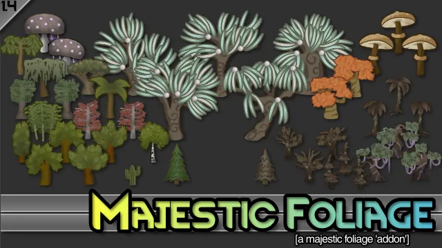 [Majestic Foliage] is a [b]mod[/b] that brings the means to increase the size of objects, mainly trees and foliage, while giving said object a "Transparency_" so you're able to more easily view behind it. This is the same sort of system first used in [Majestic Trees] with the main exception is that it is based on Vanilla textures and not custom ones. I cannot match either artstyle to any comparable level, but I can edit ones that exist in the game to be compatible. You can find addon backs with the original textures listed below.