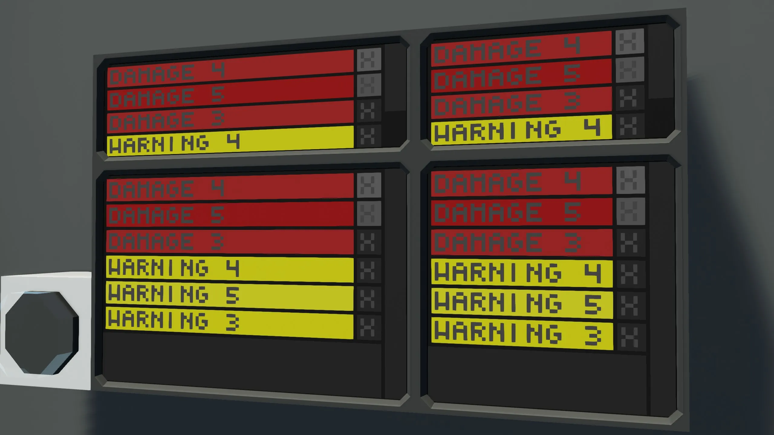 This alarm system can be used for any vehicles or systems. It has lots of customization and options. There are Critical Alerts and smaller warnings. The list can be endlessly long as the list is scrollable.