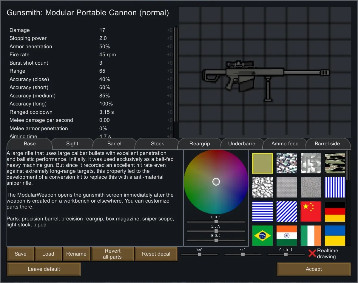 ──── A large rifle that uses large caliber bullets with excellent penetration and ballistic performance. Initially, it was used exclusively as a belt-fed heavy machine gun. But since it recorded an excellent hit rate even against extremely long-range targets, this property led to the development of a conversion kit to replace this with a anti-material sniper rifle.