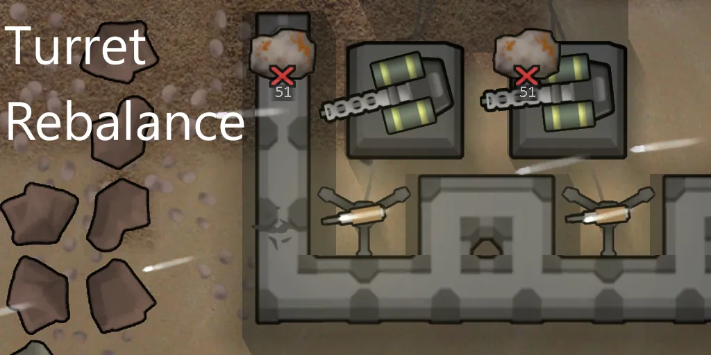 Changes turrets to use LTS Simple Ammo types. Steel becomes industrial ammo and uranium becomes spacer. Generally increases the fire rate and burst size. Increases range by a little bit. Mini turret gets about 10 times the dps (going from ~~4 to ~~40).