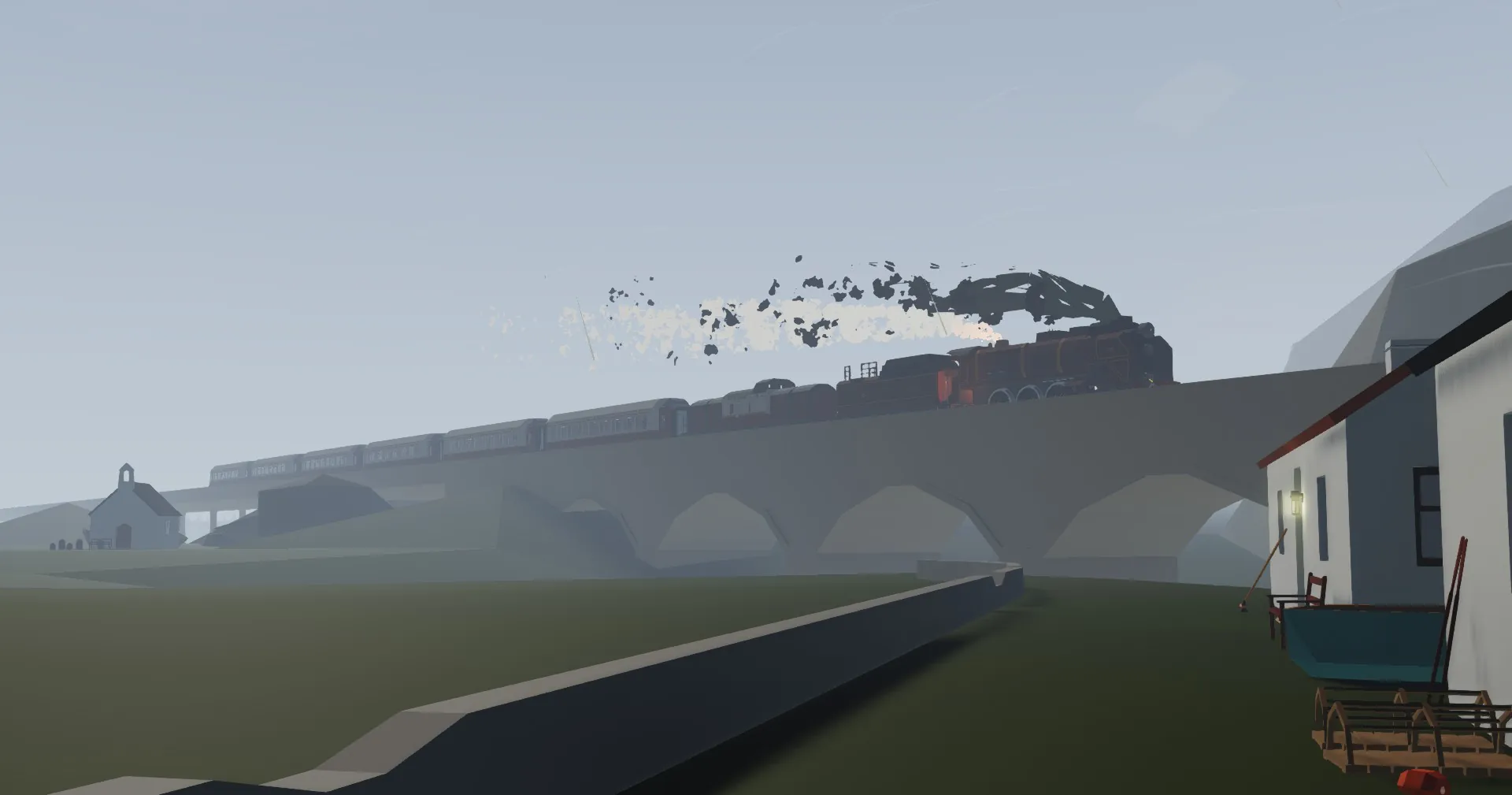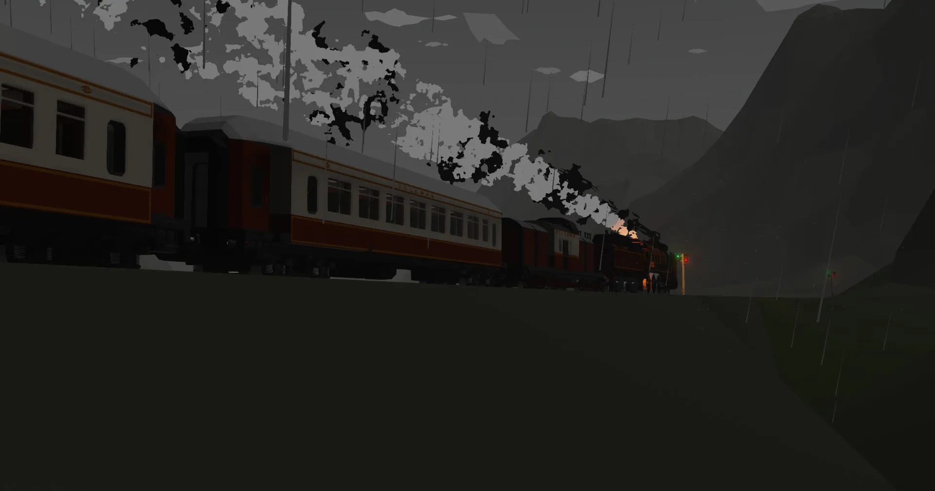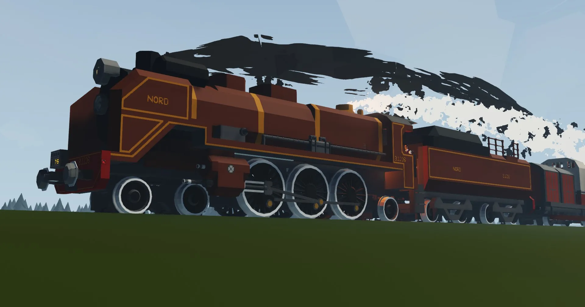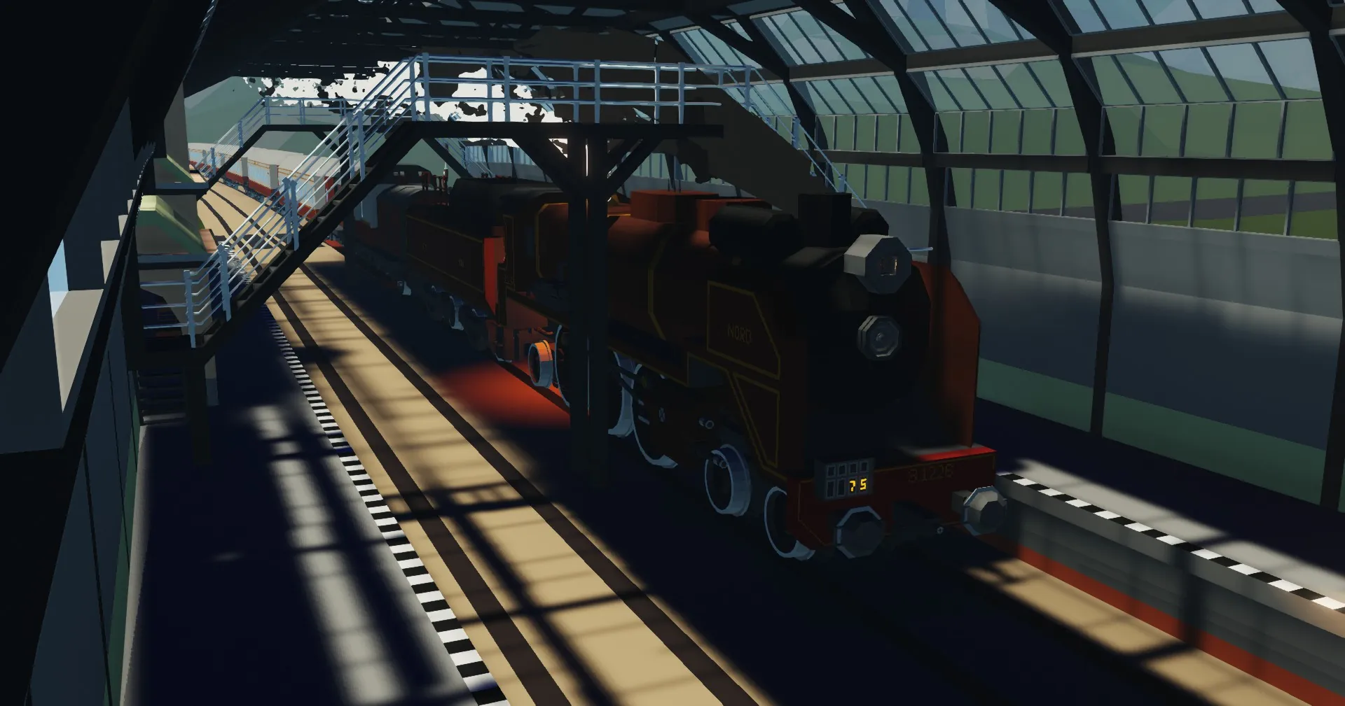 This locomotive uses gearboxes to simulate cutoff on a real locomotive. The higher the reverser position, the more torque, the lower the position, the more speed, increase the cutoff when starting or climbing a hill & decrease it when speed is needed. When the reverser position is negative the locomotive will move backwards, & the position of the reverser is displayed with a gauge. The regulator controls how much steam is sent to the engine, running with the regulator fully open will drain the boiler pressure, which reduces how much power you can get & also the generator won't run if the pressure is to low. (Generator starts if battery drops below 90% & runs till it's back at 100%) The brakes are controlled with the stand on the right of the drivers seat, applying the brake will increase the brake pressure & releasing it will set the brake pressure back to zero. This locomotive also has a switch setter that works with the ZE Smart Railroad Signals add-on, without this add-on the switch setter won't work, but the rest of the locomotive will.