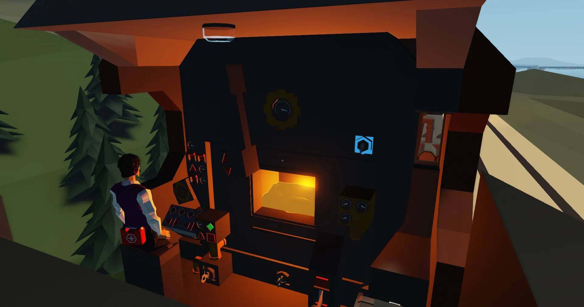 When starting the locomotive up, first locate the damper valve on the right side of the firebox & open it fully. Then turn the lighter switch below the firebox to light the fire, the lighter can be then turned off & the fire will continue to burn. If you want to kill the fire simply close the damper. Then go to the right side of the tender & connect the hose between the tender & the locomotive, the hose is pretty easily accessible but the ports where the hose is connected are underneath. Then the injector valve on the right side of the backhead can be opened to start pumping water into the boiler. Once that is done, cut in the airbrakes with the key below the brake stand on the left, release the handbrake on the tender, & flip the "Train Power" switch to share electricity with any carriages or wagons your pulling.