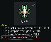 Simple patch that makes the High Life precept now also increase drug cooking speed, not just drug synthesis speed.