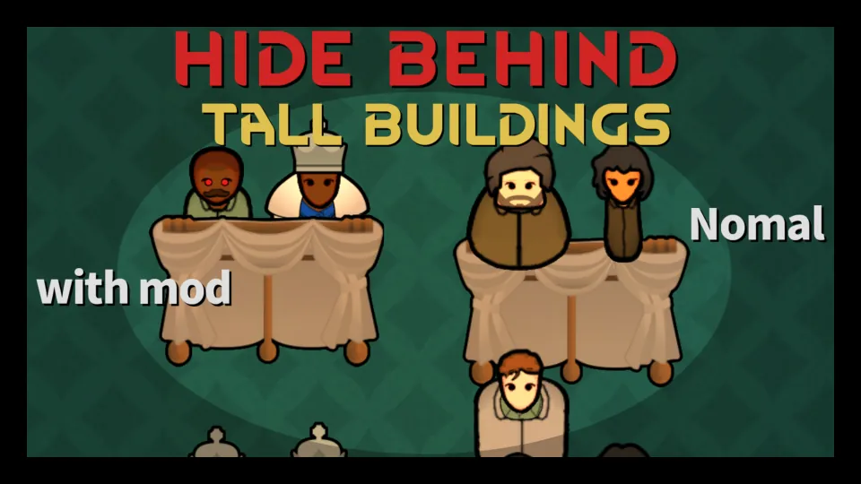[b]This mod causes pawns to be hidden and drawn behind buildings that are noticeably taller relative to the occupancy grid.[/b]