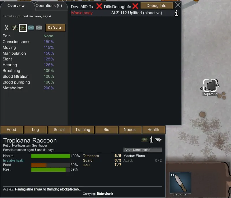 If they survive, any animal exposed to ALZ-112 will become a more integral part of your colony, complete with Backstory, Full name, a Skill Set, and the ability to be trained to Attack and Haul, and if they are big enough, Rescue.