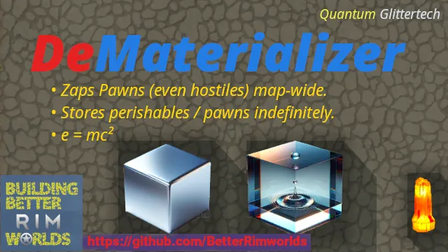 The BetterRimworlds Dematerializer enables you to dematerialize materials and pawns (both friendly and hostile!) from anywhere on the map into a temporary subspace bubble that will persist as long as their is a persistent flow of energy to the subspace capacitors.