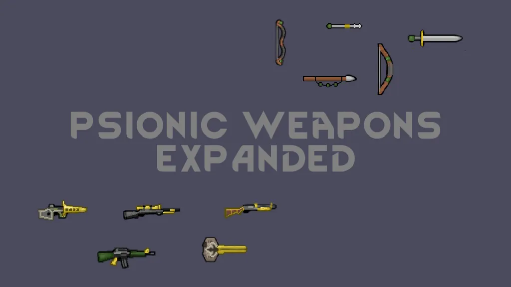 A weapon mod that adds a range of psionic-combat hybrid weapons, designed to bridge the gap between the eltex staff and a more conventional weapon. Adds new options to all tech levels, from the simple tribal bowman to the spacer marine.