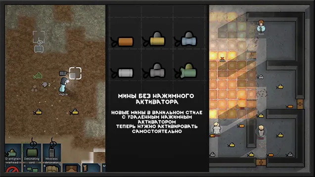 Мод Remote Detonator добавляет в игру несколько новых мин и построек, которые позволяют их дистанционно подрывать.